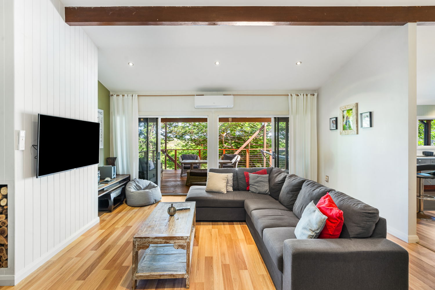 The home exudes character and warmth, with stunning stone accents, classic VJ boarding, and striking exposed beams. The expansive living areas with high ceilings allow natural light to flood the home, while the green outlook creates a peaceful, private ambiance. A private deck offers the ideal spot for outdoor relaxation or entertaining, with lovely views of the surrounding nature.